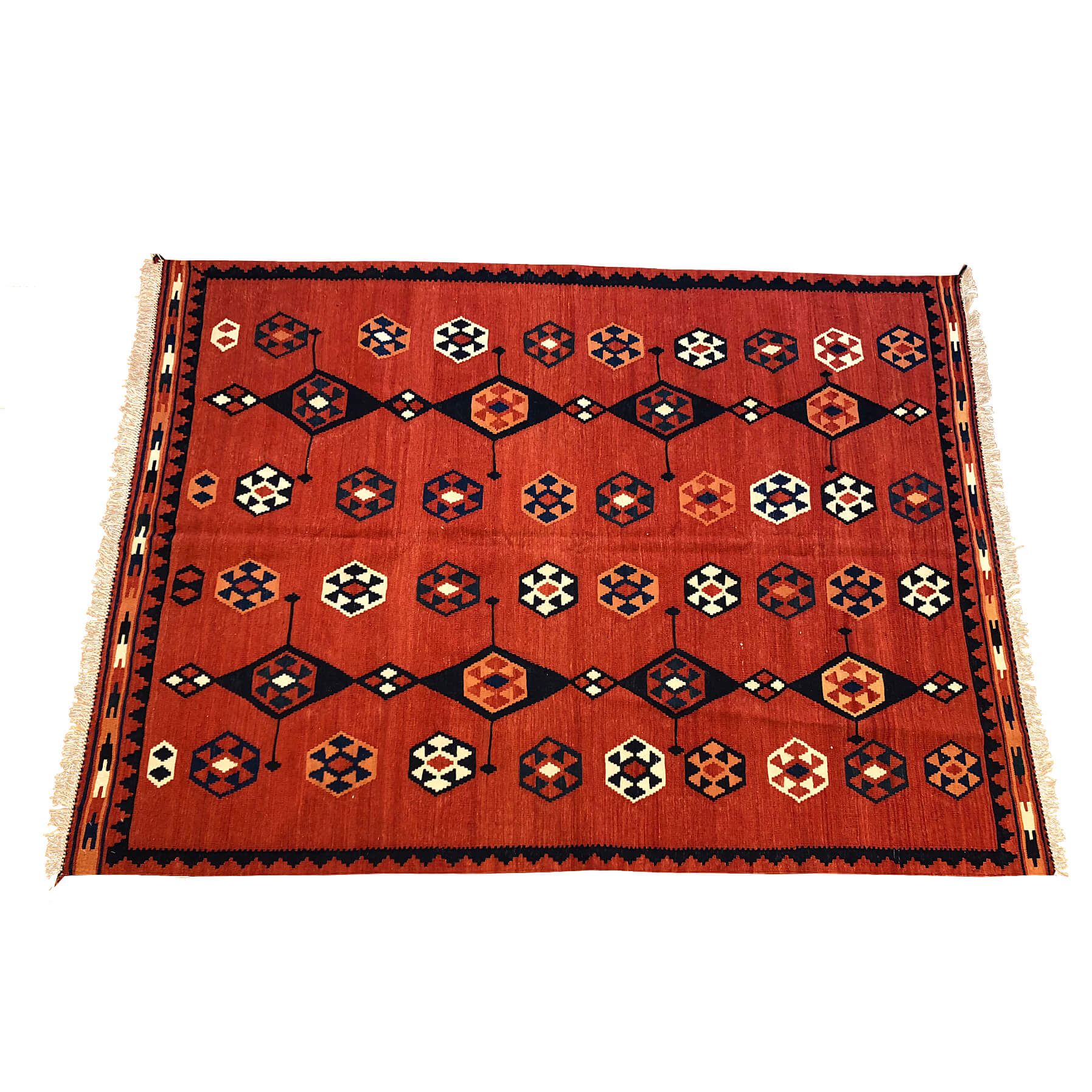 Bei einem Kelim handelt es ich um einen gewebten Teppich. Der älteste Orientteppich überhaupt hat die Besonderheit, dass der Schussfaden auf beiden Seiten des Teppichs das Muster bildet, somit kann der Teppich beidseitig verwendet werden.