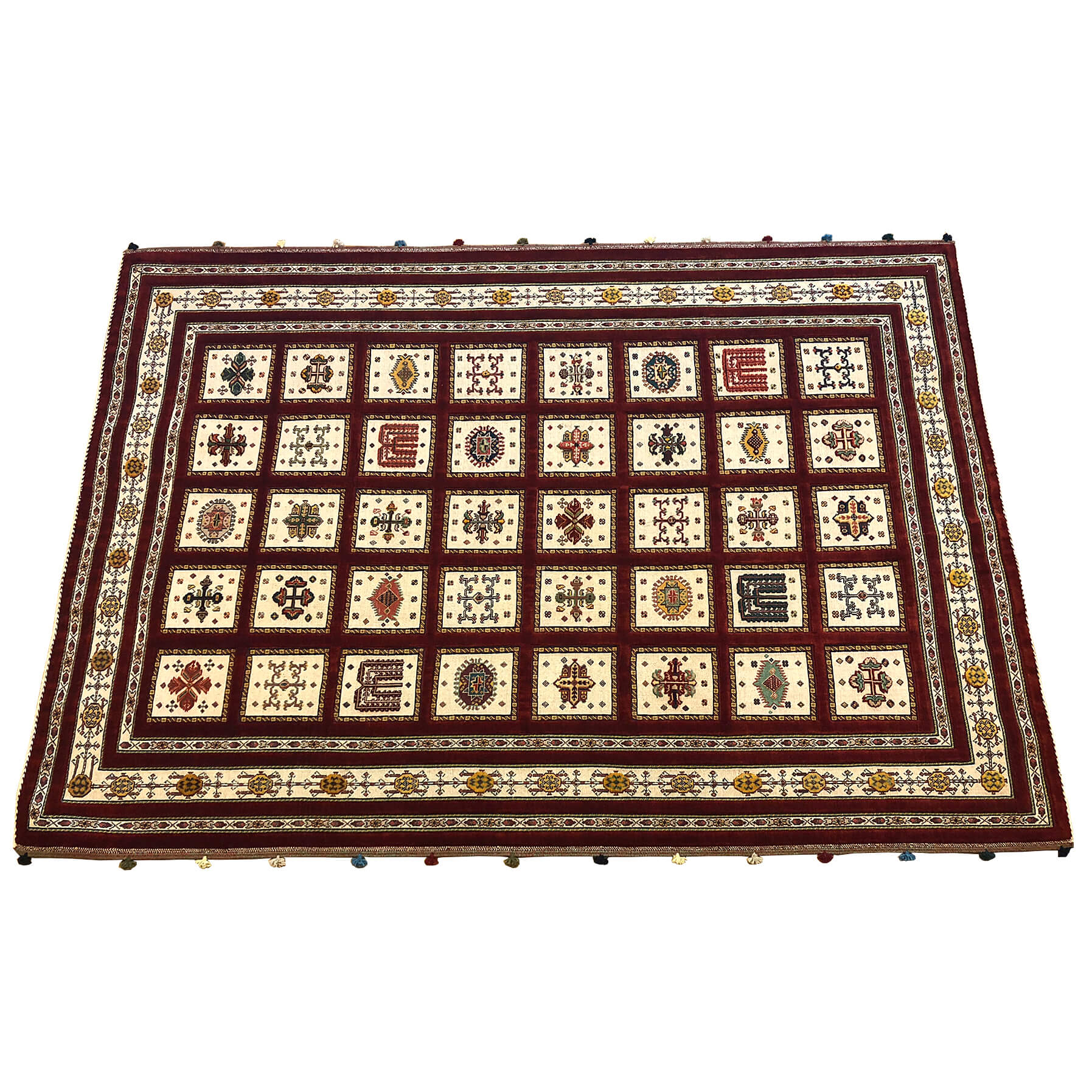 Diese echten Teppiche wurden in der Region Shiraz (Südpersien) von den Ghasghuly Nomaden handgeknüpft, somit ist jeder Teppich ein Unikat. Die Teppichart zeichnet sich besonders durch die feine und dichte Knüpfung sowie die erstklassige Schafschurwolle aus.